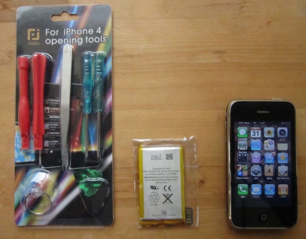 iPhone 3GS のバッテリー交換をしました。工具セットはAmazonで送料無料の280円ナリで買い、3GS 用バッテリーもAmazonで送料無料の880 円です。つまり、トータル1160円ナリでした。