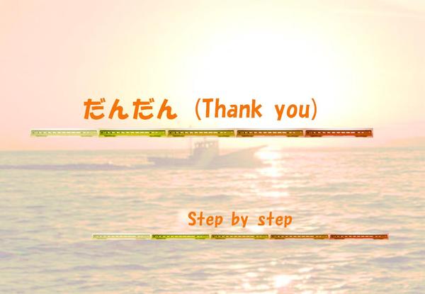 だから、今日は「だんだん」を意識したパワーポイントのスライド・デザイン・テンプレートを作ってみました。「だんだん」は、方言辞典を引くと、出雲弁で"Thank you"を意味するとともに、"Step by step"を意味するとも言います。そんな言葉が重ね合わされた色合いが「だんだん」です。そんな一つの言葉で表し難い言葉が、私たちの気持ちです。