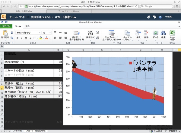 「スカートと下着と階段の関係」を計算するエクセルシート(の叩き台)を自分のPCで作成し、それを にアップロードして、さらにOffice 365エクセルでカスタマイズ・修正作業をしてみました。