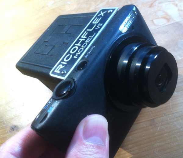 フードファインダ部を取り外してコンパクトデジカメにくっつけてみると、折りたたみ時に本体と干渉してしまうことに気づきました(冷静に眺めれば、分解するまでもなく当たり前に気づかなければならないところです)。