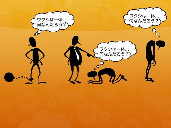 プレゼンテーションスライドは人に「何かを理解し、同意してもらい、さらに何らかの行動を促す」ためにあります。これら3つの黒い人、「足かせを眺める人」「怒る人・土下座する人」「疲れ果てた人」はどんなシチュエーションに登場することが多かったでしょうか。